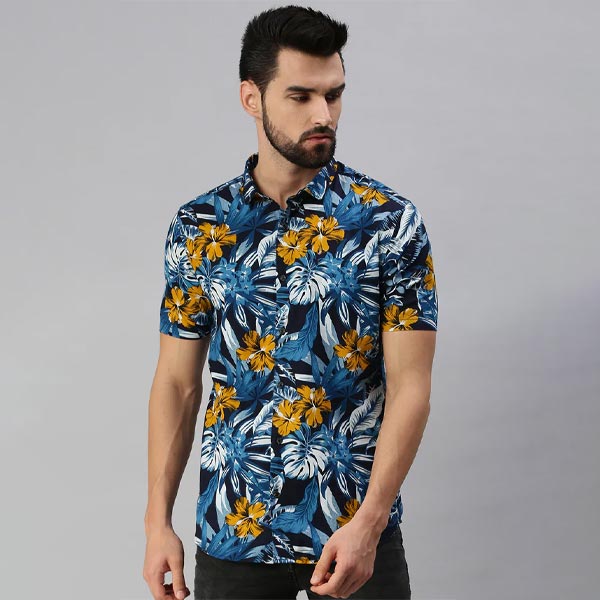 - product details : showoff men casual cotton printed slim fit shirts