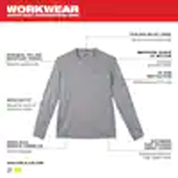 - The Long Sleeve Gray Lightweight Performance Shirt is designed for tradesmen who need their next-to-skin layer to dry fast, keep them cool, and protect them from harmful UV rays. Get a work shirt that withstands the demands of the toughest job sites with a Milwaukee WORKSKIN made from moisture-wicking fabric that helps users stay dry while working. The 100% polyester material dries fast and resists wrinkles, unlike standard cotton base layers. The relaxed fit and raglan sleeves that allow users to move freely to accomplish any task for comfortable all day wear.