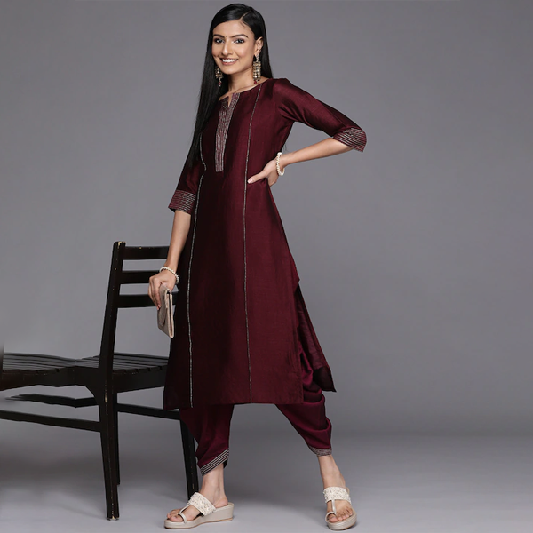 Women Maroon Solid Dhoti Salwar